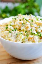 Sałatka z szynką, serem i marynowaną cebulką 19Sałatka z szynką , żółtym serem i marynowaną cebulką to super propozycja na szybki i sycący posiłek, który sprawdzi się zarówno na rodzinne przyjęcie, jak i codzienną