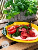 Pomidory na kremowej fecie 47Masz ochotę na coś lekkiego, prostego i pysznego? Zrób te pomidory z kremowym dipem feta – przystawkę idealną na lato. Składniki: - 2