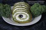 Rolada jarmużowa z twarożkiem 90przelać na dużą blachę wyłożoną papierem do pieczenia. Rozprowadzić po całości i wyrównać powierzchnię. Włożyć do piekarnika i od razu zmniejszyć temperaturę do 200℃. Piec 10-12 minut. Wyjąć ciasto i ułożyć na dużej desce papierem do góry. Zdjąć papier, a potem zwinąć ciasto w ten papier, by nabrało odpowiedniego kształtu. Odstawić do ostygnięcia. Roladę posmarować twarożkiem. Przy jednym brzegu
