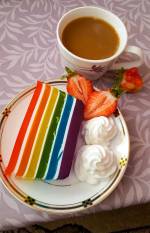 Tęczowy galaretkowiec 71Wspaniały letni deser dla każdego. Idealne na imprezę w ogrodzie, urodziny czy też po prostu bez okazji. Składniki 6 kolorowych galaretek 1,5 szkl. mleka woda