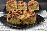 Drożdżówka z rabarbarem 85Drożdżówka z rabarbarem i kruszonką to prawdziwa uczta dla podniebienia, która łączy w sobie słodycz i kwaskowatość rabarbaru z chrupkością i delikatnością drożdżowego ciasta, a wszystko to okraszone dodatkowo aromatyczną kruszonką. W tym wyjątkowym połączeniu smaków kusząca słodycz i kwaskowatość rabarbaru idealnie współgra z delikatnością i lekkością drożdżowego ciasta, tworząc prawdziwy raj dla podniebienia. Dodatkowo, kruszonka nadaje dodatkowego charakteru