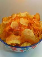 Domowe chipsy solone 78Chrupiące i aromatyczne chipsy ziemniaczane, którą są o wiele smaczniejsze i zdrowsze od tych ze sklepu. Składniki 6 dużych ziemniaków sól koperek olej do smażenia Przygotowanie