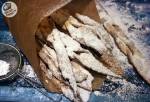 Faworki z piekarnika 208pieczenia 1 płaska łyżka cukru wanilinowego Przygotowanie: Mąkę przesiałam. Białka oddzieliłam od żółtek i schowałam "na zaś potem" do zamrażalki. Dodałam szczyptę soli i resztę podanych składników. Łyżką zagniotłam ciasto na wstępie, a później wyrabiałam ręcznie. Było trochę kleiste, więc dosypałam tą dodatkową (+1) łyżkę mąki i uformowałam kulkę, którą następnie zafoliowałam i odłożyłam do leżakowania na godzinę, do lodówki(...)Może błędem było dodanie proszku do pieczenia, ale to dopiero okaże się przy pieczeniu. I jednak nie był to błąd! Ciasto przy rozwałkowywaniu trzeba podsypać mąką. Później jest już z górki. Piekarnik nastawiłam na 180 stopni. Faworków wyszło mi idealnie dla 2 osób. Hah! Oczywiście, że można zjeść więcej lub też nie podzielić się z nikim. : ) Piekłam ok. 10 minut