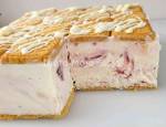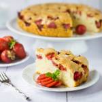 MeCooksCiasto Truskawkowa Góra Lodowa to letnia wersja tradycyjnej Góry Lodowej. Jest to deser składający się z kilku warstw maślanych herbatników przełożonych kremem budyniowym. Jedną warstwę stanowi mus truskawkowy z galaretką o tym samym smaku, natomiast na wierzchu ciasta ułożone są przekrojone na pół okrągłe biszkopty, które przypominają wierzchołki góry, stąd nazwa ciasta. Dodatkowo w cieście między biszkoptami ułożyłam przekrojone truskawki(...)związku z tym nosi ono nazwę Truskawkowa Góra Lodowa . Ciasto Truskawkowa Góra Lodowa ładnie się prezentuje na talerzu i świetnie smakuje. Poprzez dodanie truskawek nie jest ono zbyt słodkie. Wierzch ciasta stanowi polewa zrobiona z mleka w proszku, ale można ją też zastąpić rozpuszczoną w śmietanie białą czekoladą. Truskawkowa Góra Lodowa to ciasto bez pieczenia, dlatego najlepiej smakuje na drugi