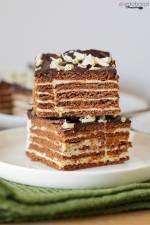 Ciasto Eklerek bez pieczenia 108Tradycyjne Eklerki to delikatne, podłużne ciastka wypełnione dużą ilością kremu budyniowego lub bitą śmietaną. Ja tym razem zrobiłam ciasto Eklerek bez pieczenia na blaszce. Jest to połączenie słonych krakersów, kremu budyniowego oraz polewy czekoladowej. Ciasto Eklerek bez pieczenia jest szybkie i łatwe do przygotowania. Jedyną trudność stanowi tu ugotowanie budyniu i zrobienie kremu budyniowego. Robiąc krem budyniowy należy zwrócić uwagę(...)wszystkie składniki były w temperaturze pokojowej. Jest to idealny przepis dla osób szukających prostego do zrobienia deseru i nie mających w swojej kuchni piekarnika. Ciasto Eklerek bez pieczenia nie jest zbyt słodkie, ponieważ słone krakersy przełamują słodycz kremu budyniowego. Jedyną wadą ciasta Eklerek bez pieczenia jest to, że po jego zrobieniu musi ono poleżeć kilka godzin w lodówce, ponieważ wtedy