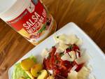 Sos salsa. 307salsa, idealny do nachos, ryby i dań mięsnych. Bardzo pikantny i smaczny, także można powiedzieć, że jest to sos dietetyczny, bo składa się głownie z warzyw i dużej ilości pikantnych przypraw . Sos tak na prawdę jest czerwono-różowy, ale na zdjęciu wygląda żółty. Ciekawie. Składniki: 5 pomidorów pół kabaczka duża cebula papryczka chilli 1 łyżeczka ostrej papryki w proszku sól