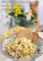 Sałatka z porem, jajkiem, szynką, ananasem i kukurydzą to mój rzut na taśmę z ostatnim wielkanocnym przepisem 2021. Ta sałatka to mój kolejny pomysł na coś