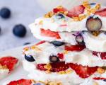 Mrożone batony jogurtowe z owocami i granolą 109Mrożone batony jogurtowe z owocami i granolą to fantastyczny pomysł na zdrowy i niskokaloryczny deser. Są kremowe dzięki użyciu gęstego jogurtu greckiego i pełne pysznych owoców