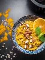 Złota owsianka z kurkumą 114Złota owsianka z kurkumą Zdrowe i zarazem wyjątkowe w smaku śniadanie na słodko, którego przygotowanie zajmie Ci dosłownie 15 minut. Wystarczy kilka łatwo dostępnych składników, niewielki