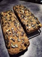 Bezglutenowy chleb, bez gotowych mieszanek, bez gumy ksantanowej 192zdrowie. Idealnie byłoby gdyby był na zakwasie bezglutenowym, jednak nie mam jeszcze takiego zakwasu, jak tylko taki wychoduję, podzielę się z wami takim przepisem. Przepis pochodzi z książki Chleb domowa piekarnia Piotra Kucharskiego. Składniki na dwa chleby forma 30×12 cm. 120 g ziaren siemienia lnianego 200 g mąki kukurydzianej 350 g mąki z surowej, niepalonej Kaszy gryczanej(...)gryczanej 120 g płatków jaglanych 160 g pestek dyni i słonecznika 400 g ciepłej wody 500 g wody gazowanej 8 g drożdży instant 2 łyżeczki soli 1-2 łyżeczki syropu klonowego lub innego słodzidła 3 łyżeczki czarnuszki 3-4 łyżki oliwy z oliwek Siemię lniane zalać wodą, tylko do pokrycia, zagotować, gotować 15 min na małym ogniu. Wystudzić, zmielić