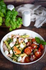 Makaron ze szpinakiem, wędzonym łososiem i fetą 45Nie masz czasu na długie gotowanie, ale chcesz zjeść coś zdrowego, pożywnego i pełnego smaku? Makaron ze szpinakiem, wędzonym na gorąco łososiem i fetą to strzał
