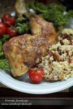 Pałki kurczaka pieczone z figami oraz puree z zielonego groszku 162