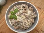 Polędwiczki wieprzowe w sosie grzybowo-musztardowym a'la Strogonow 222Pyszne, rozpływające się w ustach mięso w kremowym sosie na bazie świeżych pieczarek, cebuli i musztardy. Wspaniała potrawa nie tylko na co dzień, ale także na