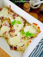 Zapiekanka Myśliwego 322Zima jest czasem, gdy w mojej kuchni królują zapiekanki. Dzisiejsza jest szczególnie zimowa, bo z pierzynką ;) A pod nią ukrywa się aromatyczna dziczyzna z warzywami. Gwarantuję