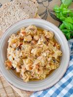 Tarta z indykiem i szpinakiem w sosie pieczarkowym z prażonym słonecznikiem i dynią 192wykonaniu, nie wymagają wiele czasu, a smak i pożywność są powalające! Nawet mój mąż jest po takim obiedzie całkiem najedzony (choć oczywiście zjadłby więcej)! :) Dzisiejsza wersja z pieczarkami, indykiem i szpinakiem jest dość tradycyjna, ale odpowiednio doprawiona staje się wyjątkowa! Tarta z indykiem i szpinakiem w sosie pieczarkowym z prażonym słonecznikiem i dynią Składniki na ciasto(...)mąki 100 g masła 3-4 łyżki jogurtu naturalnego sól Składniki na farsz: 7 dużych pieczarek 1 pierś z indyka 250 ml śmietanki 18% 400 g mrożonego szpinaku 1 cebula 5 ząbków czosnku przyprawy: sól himalajska, pieprz ziołowy, imbir, natka pietruszki, gałka muszkatołowa, eliksir - przepis znajdziecie tutaj ziarna słonecznika i dyni Indyka kroimy w drobną kostkę. W miseczce mieszamy