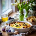 Zapiekanka z jarmużem i ricottą 123czosnkiem i kiełbaską jarmuż i do tego delikatna ricotta. Lekkie i jednocześnie sycące. Zapiekanka z jarmużem i ricottą Składniki: 1 łyżka oliwy 3 ząbki czosnku 1/2 cebuli 150 g kiełbasy 200 g posiekanego jarmużu 5 jajek 150 ml śmietany 18% 1 łyżka posiekanej bazylii 70 g startego parmezanu 200 g ricotty sól i pierz do smaku kawałek masła Wykonanie: Cebulę(...)czosnek posiekać, kiełbasę pokroić w drobną kostkę. Na patelni rozgrzać oliwę i dodać cebulę, chwilę podsmażyć i dodać kiełbasę i czosnek, podsmażyć ok 1 minuty i dodać jarmuż, smażyć aż liście zmiękną. W misce wymieszać jajka, śmietanę, starty parmezan, bazylię, dobrze posolić i popieprzyć, przełożyć jarmuż i wymieszać. Za pomocą łyżki przekładać ricottę do mieszanki i delikatnie zmieszać ( ricotta