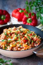 Gulasz z fasolką szparagową i kiełbasą 34Jeśli lubisz dania typu leczo, ten gulasz z fasolką szparagową i kiełbasą z pewnością przypadnie Ci do gustu. To aromatyczna, sycąca potrawka z warzywami, która świetnie