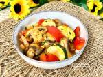 Leczo z cukinii z szynką 266Kolejne dzieło dwojga blogerów. Tym razem postanowiliśmy zrobić leczo z wykorzystaniem szynki (surowej) zamiast kiełbasy. Jakoś tak nie przemawiała do nas kiełbasa, którą można było kupić w chorwackich sklepach – była masakrycznie droga i niefajna. Zresztą szynka to tylko dodatek, a właściwy smak potrawie nadała przede wszystkim dojrzałe w słońcu warzywa: papryka, pomidory i cukinia. Jak zwykle było pyszne. A może