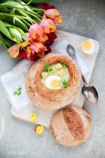 Barszcz biały w chlebie 69Barszcz biały w chlebie Barszcz biały to jedno z tych dań, które doskonale oddają ducha polskiej kuchni, łącząc w sobie tradycję i wyjątkowy smak. Serwowany w