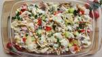 Sałatka z tortellini 238Składniki: Tortellini 250 g Ulubiona szynka 100 g ( u mnie pieczona pierś z kurczaka) Ogórek gruntowy 2 Kukurydza puszka Papryka czerwona Natka pietruszki garść