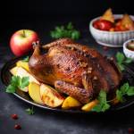 Kaczka pieczona z jabłkami 99Kaczka pieczona z jabłkami. Kaczka pieczona Czy istnieje bardziej eleganckie i wykwintne danie niż kaczka pieczona ? To prawdziwa uczta dla podniebienia, a jeśli dodamy do