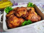 Miodowo-musztardowe udka z kurczaka 243Niesamowicie aromatyczny kurczak ... delikatne i rozpływające się w ustach mięsko z dodatkiem pieczonych ziemniaków. Marynata miodowo-musztardowa nadaje mięsu soczystości i nietuzinkowego smaku. Składniki na 3 porcje: 3 szt. udka z kurczaka (bez skóry i kości - Lidl) 4 łyżki miodu 4 łyżki ostrej musztardy 1 łyżka soku z cytryny 2 łyżki oliwy z oliwek sól, pieprz szczypta ostrej(...)Składniki na marynatę mieszamy w misce - wkładamy kurczaka, dokładnie obtaczamy w niej mięso i odstawiamy przykryte na min. 1 godz. do lodówki. Kurczaka z marynatą przekładamy do naczynia żaroodpornego i wkładamy do piekarnika nagrzanego do 190 stopni - pieczemy 20 min, następnie przykrywamy naczynie i pieczemy jeszcze ok. 30 min. Mięso podajemy z zapiekanymi ziemniakami i pomidorem z serem feta, posypujemy