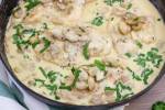 Kurczak w sosie pieczarkowym 138Kurczak w sosie pieczarkowym z czosnkiem i mascarpone to pomysł na szybki obiad , który pomimo swojej prostoty zachwyca smakiem. Tego kurczaka z patelni zrobić można w