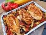Filety zapiekane na kaszy z warzywami 224Pyszne danie, które przygotujesz w jednym naczyniu w piekarniku. Kasza pęcznieje pod warzywami i mięsem i przesiąka aromatem warzyw i przypraw. Coś pysznego. Szybko i prosto