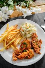 Pierś z kurczaka w cieście naleśnikowym 169Pierś z kurczaka w cieście naleśnikowym to danie, jakie pamiętam z czasów studenckich. Przepadają za nią dzieci, nastolatki, ale i dorośli. Nie sądziłam, że po latach