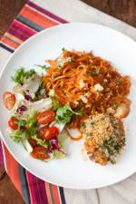 Pieczony kurczak z makaronem w sosie pomidorowym 120Wróciliśmy do szkoły, wróciliśmy do szkolnego tryby gotowania – w weekend już rosół bulgotał na ogniu, co prawda jeszcze za ciepło na rosół ale więkoszość wylądowała