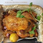 Kurczak pieczony z chorizo 128Pyszny, aromatyczny kurczak, pieczony z ostrą paprykową chorizo i z cytrynami.
