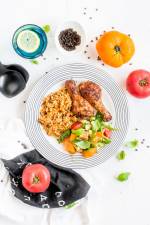 Pieczone podudzia z kurczaka z pomarańczowym ryżem 100Pieczone podudzia z kurczaka z pomarańczowym ryżem, czyli danie które jest jednocześnie: proste, szybkie i naprawdę tanie. A, zapomniałem dodać, że również świetnie smakuje! Idealny obiad