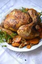 Kurczak z pieczonymi warzywami II- chicken with veg 237Uwielbiam pieczone warzywa z ziołami. Zapach czosnku I ziół w kuchni podczas pieczenia, pobudzi chyba każde kubki smakowe :) Nie mówimy o tym , że warzywa się zdrowe I powinniśmy dostarczać naszemu organizmowi dawkę witamin I energii, by móc się cieszyć życiem I rozdawać szczeście :) No to zaczynamy : Składniki: Podudzia kurczaka- w zależności od potrzeby 5 marchwi 1-2 pietruszki