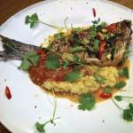 Kulinarna ChwilaDORADA DUSZONA PO MAROKAŃSKU SKŁADNIKI 2 świeże dorady; szafran; kuskus; harissa; kilka gałązek tymianku; dymka; pół pęczka świeżej kolendry; połowa kiszonej cytryny; 2 kawałki grillowanej papryki; pół łyżeczki harissy; 3 suszone morele lub 1 łyżka rodzynek; 2 łyżki orzechów pistacjowych; 2 łyżeczki sezamu; oliwa z oliwek; sól, pieprz; przepis na doradę duszoną po marokańsku Artykuł Dorada duszona po marokańsku pochodzi