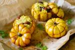 wesoła kuchniasama temperatura pieczenia co poprzednio. Faszerowaną dynię podawać jako danie główne lub dodatek do dań obiadowych . Faszerowana dynia Warto wiedzieć robiąc dynię faszerowaną kaszą jaglaną. Kaszę jaglaną zastąpić można kuskusem. W tym daniu dobrze sprawdza się dynia sweet dumpling , która jest małych rozmiarów. Można jednak sięgnąć po jedną większą dynię zamiast trzech małych. Po podpieczeniu, a przed wypełnieniem jej farszem