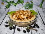 okolicepalnika.plłyżeczki soli 1/2 łyżeczki przyprawy włoskiej 120 g masła zimnego 2 żółtka 1 łyżka zimnej wody nadzienie: 300 g jogurtu greckiego 2 białka 2 jajka 160 g kuskus perłowy dynia trufla 4 pomidorki koktajlowe 20 dkg podgrzybków świeżych sól, pieprz, czosnek granulowany, zioła włoskie 1 kawałek dyni świeżej natka pietruszki, bazylia świeża Tarta ciasto: Do miski wsypuję mąkę