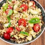 MeCooksPyszna, super prosta do zrobienia i niezwykle uniwersalna sałatka z kuskusem , to idealna przekąska lub nawet danie główne. Ten niezawodny przepis sprawdzi się nie tylko jesienią. - z orzechami i rodzynkami - świetna jako dodatek do obiadu - można do niej dodać ser feta lub kurczaka