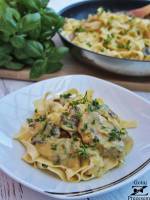 Gotuj z Prezesembyło pyszne! Soczyste i mięciutkie kawałki mięsa w bardzo kremowym sosie śmietanowo – serowym z dodatkiem pieczarek. Danie podałam z makaronem tagliatelle, ale doskonale sprawdzi się również ryż, kasza kuskus czy puree ziemniaczane. Filet z kurczaka w sosie serowym z dodatkiem pieczarek to doskonały pomysł na smaczny i szybki obiad, do zrobienia w pół godziny! Pierś z kurczaka to mięso