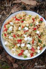 sałatka powstała z resztek, jakich chciałam się pozbyć przed wyjazdem na drugą część wakacji. Kupiliśmy trochę za dużo niektórych produktów, postanowiłam zrobić z nich drugie śniadanie. Kuskus z papryką, cukinią i fetą poleca się także jako obiad do pracy. Bardzo często tego typu sałatki robiłam właśnie do pracy. Piszę robiłam, bo obecnie siedzę z Tolką w domu, a My pracuje(...)zdalnie. Kuskus możecie zastąpić jakąkolwiek inną kaszą, warzywa też możecie dodać różne. Pamiętajcie tylko o prawdziwej fecie i dobrej jakości oliwie. Składniki: 3/4 szklanki kaszy kuskus pół czerwonej papryki pół cukinii pół opakowania sera feta 1 cebula 1 łyżka poszatkowanej natki pietruszki 2 łyżki ziaren słonecznika 1 łyżka soku z cytryny sól pieprz 2 łyżki oliwy extra virgin (przepis
