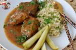Moja smaczna kuchniakluskami, kaszą, makaronem, czy ziemniakami. Każdy kto nie jest jaroszem doceni w smaku dobry gulasz wołowy. Ja tym razem podałam gulasz wołowy na wschodnią nutę z kluskami z kaszy kuskus. Mięso wołowe dość chude, kroimy paski. Na dobrze rozgrzany olej wrzucamy paski wołowiny, przesmażamy kilka minut, dodajemy pokrojoną w piórka cebulę, przesmażamy aż zmięknie. Ja nie lubię wodnistych sosów