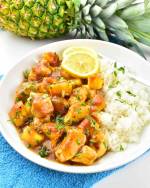 kostkę, zieloną oraz czerwoną paprykę. Kurczaka możesz podać z ryżem, tak jak my. Jeśli wolisz, możesz również zadbać o własne dodatki. Świetnie sprawdzą się min. makaron ryżowy, kasza bulgur, kuskus, a nawet makaron z cukinii. Jak zrobić ten przepis na kurczaka po hawajsku? Oczyszczony i dobrze osuszony filet z kurczaka oraz ananasa pokrój w niewielką kostkę. W misce wymieszaj