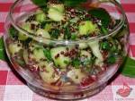 To co kochammnie jest bezglutenowo, więc z komosą ryżową, ale charakterystyczny składnik sałatki czyli duża ilość natki pietruszki i liści mięty pozostaje bez zmian. Można również przyrządzić ją na bazie kaszy kuskus lub jaglanej, jak moja poprzednia Sałatka z kaszy jaglanej po arabsku. Sałatka jest orzeźwiająca, idealna na kolację letnią porą. Składniki: ? 3/4 szklanki komosy ryżowej czerwonej ? 2 średnie ogórki zielone