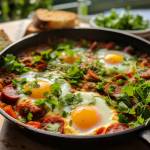 Kuchnia Na Wypasiekolendrą lub natką pietruszki. Podawać bezpośrednio po przygotowaniu. Szakszuka z chorizo najlepiej smakuje podawana z ciepłym, chrupiącym pieczywem, które doskonale wchłania bogaty sos. Można ją również podawać z ryżem, kuskusem lub lekką sałatką, aby stworzyć pełnowartościowy posiłek. Różne oblicza szakszuki: twórcze wariacje na klasyczne danie Szakszuka Wegetariańska : Dla wegetariańskiej wersji zrezygnuj z chorizo i dodaj więcej warzyw, takich jak cukinia