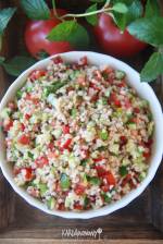 Smaczna Pyzakasze świetnie łączą się z soczystymi warzywami i ziołami. I śmiało mogę powiedzieć, że kocham kaszę ! Sałatka tabbouleh to klasyka kuchni arabskiej, tyle że przygotowuje się ją z kuskusu więc poniższa wersja jest czymś podobnym, ale jednak innym. Moja wersja jest doprawiona według mojego smaku - możecie ją dowolnie modyfikować np. dodać czosnek albo świeżą miętę czy co tam Wam przyjdzie