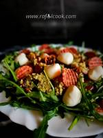 Damsko-męskie spojrzenie na kuchnięPrzepis na sałatkę , której głównym składnikiem jest kuskus? Nic prostszego. Letnia sałatka z kuskusem Kuskus najczęściej spotkać można jako dodatek do dań obiadowych. W najprostszej wersji jest on zalewany wrząca wodą po czym całość odstawia się na kilka minut do napęcznienia. Tak przygotowany kuskus co niektórzy w ogóle nie doprawiają i serwują w formie bez przypraw. Sugerowałabym Wam tego(...)robić ponieważ bez przypraw kuskus nie ma żadnego smaku. Bardzo prosto kuskus możecie przyprawić solą, pieprzem, odrobiną papryki i ziołami. Mi najlepiej smakuje serwowany z grillowanymi warzywami i świeżymi ziołami właśnie. W minioną sobotę byłam zaproszona na urodziny teścia. Obiecałam zrobić sałatkę. Rodzina mojego męża unika majonezu więc nie wchodziły w grę sałatki majonezowe. Zrobiłam zatem sałatkę z kuskusem