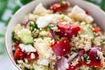 OstryKęsLetnia sałatka z fetą, kuskusem i warzywami to pyszny pomysły na lekki lunch lub kolację w ciepłe dni. To lekki, prosty i pożywny posiłek w środziemnomorskim stylu. Letnia sałatka z fetą, kuskusem i warzywami – idealny posiłek na upalne dni Gdy temperatura na zewnątrz nieubłaganie rośnie, chęć do długiego stania przy garach gwałtownie spada. Na upalne dni potrzeba szybkich przepisów(...)które nie wymagają gotowania i pieczenia. Dlatego ta letnia sałatka z fetą i kuskusem jest idealna na wysokie temperatury. POLUB NA-TALERZU.PL NA FACEBOOKU Żadnego ze składników sałatki nie musimy gotować. Warzywa kroimy świeże, feta jest prosto z opakowania. Kuskus natomiast jest idealną kaszą dla leniwych – wystarczy go tylko zalać wrzącą wodą, przykryć i po kilku minutach jest już gotowy