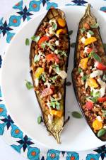 greenscarfsobie coś magicznego, przynajmniej dla mnie, uwielbiamy je. Nie umiem opisać na czym polega to coś ale przepięknym oberżynom nie umiem się oprzeć. Tym razem piękne bakłażany nafaszerowałam kuskusem, i są pyszne, polecam. Danie poleca się również dla wegan i wegetarian jako samodzielne danie, zresztą ja weganką nie jestem a zjadłam ze smakiem nie dojadając niczego więcej. Bakłażan faszerowany kuskusem