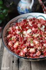 Damsko-męskie spojrzenie na kuchniępyszny i uniwersalny, sprawdzi się niezależnie od składu sałatki. Zwykle też dodaję puszkę fasoli albo jakąś kaszę, aby przemienić moje spontaniczne danie w bardziej sycący posiłek. Chętnie sięgam po kuskus, bo jest gotowy po 5 minutach, jednak tym razem dodałam kaszę jaglaną, której ugotowałam większą ilość i z przyjemnością zjadam na śniadanie z mlekiem roślinnym i owocami. Mówimy(...)ogórek garść rzodkiewek garść pomidorków koktajlowych 2 garście szpinaku baby po 1 garści młodych listków rzodkiewki oraz buraka dodatkowo: 1 szklanka ugotowanej kaszy jaglanej (zamień na inną kaszę, np. kuskus lub na puszkę fasoli lub cieciorki) na sos: 2 łyżki białego octu winnego (lub jabłkowego), 1 ząbek czosnku, 1 łyżeczka musztardy, sól, pieprz, 6 łyżek oliwy Przygotowanie: Pokrój warzywa