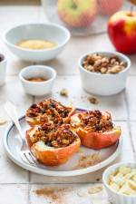 Moje Małe Czarowanieprosty przepis na pieczone jabłka. Są przepyszne! Nadziałam je kaszą kuskus z namoczonymi w rumie rodzynkami, orzechami i żurawiną. Dla podkręcenia smaku dodałam łyżkę kremu ciasteczkowego. Jakie to wyszło dobre!!! Trudno było się powstrzymać przed wyjadaniem nadzienia prosto z miski:) Jabłka upiekłam we frytkownicy beztłuszczowej, która również w tym przypadku sprawdziła się doskonale. Wystarczyło zaledwie 12 minut w temp(...)makaronem Bursztynowa szarlotka Deser a'la szarlotka z kremem Mini-jabłeczniki Pieczone jabłka nadziewane kaszą i bakaliami Składniki: 2-3 jabłka (np. jonagold, boskop, antonówka, bojken) 4 łyżki kaszy kuskus lub jaglanej 1 łyżka rodzynków (można dać namoczone w rumie) 1 łyżka żurawiny 2 łyżki posiekanych orzechów (np. włoskich, migdałów, laskowych) 1 łyżka kremu ciasteczkowego* sok z cytryny *zamiast kremu