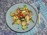 W królestwie smaków BeatySkładniki: Opakowanie kaszy kuskus słoik 300 ml papryki konserwowej mały słoik pieczarek marynowanych trochę ogórka konserwowego 5 plasterków szynki majonez sól pieprz Wykonanie: Kasze kuskus przygotować według instrukcji na opakowaniu (zalać wrzącą wodą). Paprykę, pieczarki, ogórka i szynkę pokroić w kostkę. Następnie dodać majonez oraz przyprawy i dokładnie wymieszać